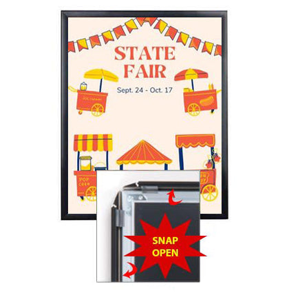 All four sides of the mitered 1 5/8" wide snap frame rails are spring-loaded to "snap-open"; it easily snaps shut and provides posters and signs with a tight even and wrinkle free grip.