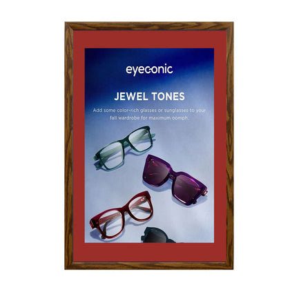 Cost effective, wall mount wood snap frames for small and large signage projects are accentuated with a simulated wood wrap finish and are the ideal choice for many quick change display applications that require an interior touch with a wood finish.