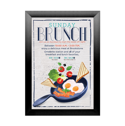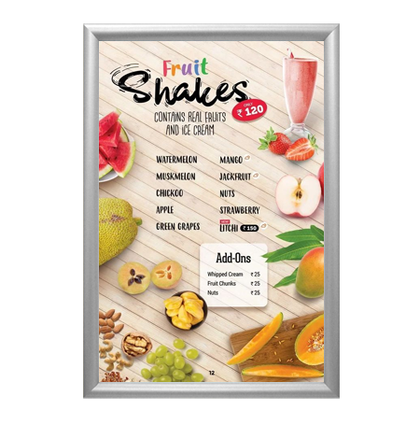 Economically priced, quick-changing, poster snap frames with radius corners allow you to effortlessly place and change your posters, signs, and advertisments.