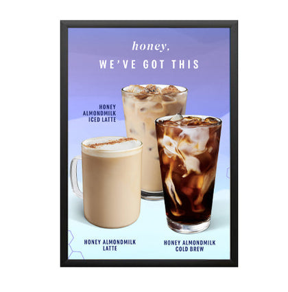Aluminum Snap Frames 20x24 are the most popular changeable poster displays. Simplicity and low cost are the primary reason as well as offering the most popular 20 x 24 poster frame finishes, black, silver and gold that fit comfortably within numerous interior retail store decors. One 20 x 24 poster display or several 20x24 sign frames or thousands of 20x24 frames, “poster snaps” remains the favored choice for small and large businesses, retail stores, corporations, institutions and as a POP display signage fixture. Wall mount and snap open your 20x24 snap frame, update your 20 x 24 poster, and snap shut. That's it!