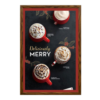 Cost effective, wall mount wood snap frames for small and large signage projects are accentuated with a simulated wood wrap finish and are the ideal choice for many quick change display applications that require an interior touch with a wood finish.