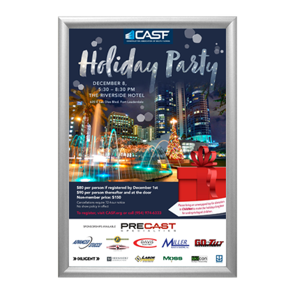 Poster Snap banner holder is made of silver anodized aluminum which gives the display a sharper look when compared to plastic banner holders, and it’s durability is ideal for long term advertising on store windows, when suspended from the ceiling, or when wall-mounted.