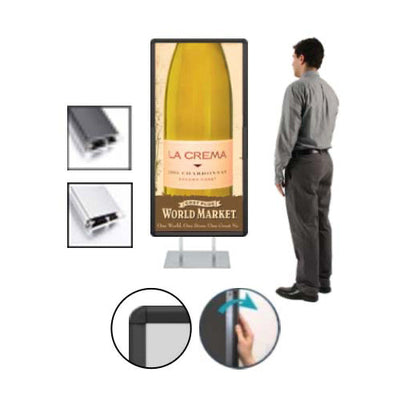 - Floorstand Snap Frame: Singled Sided (1 Frame) or Double Sided (2 Frames)