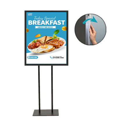 - Floorstand Snap Frame: Singled Sided (1 Frame) or Double Sided (2 Frames)