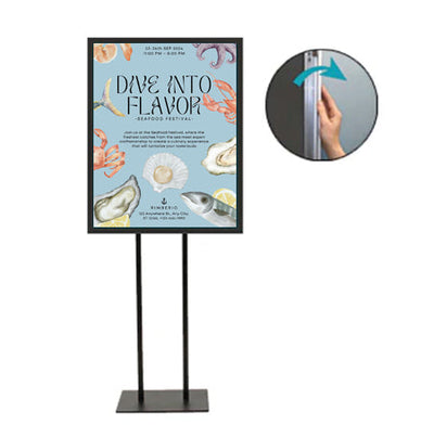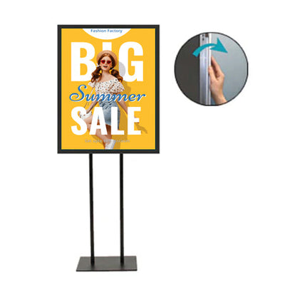 When ordering the poster stand, choose either one 20x28 frame for single-sided viewing or two snap frames for double-side viewing.