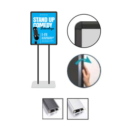 - Floorstand Snap Frame: Singled Sided (1 Frame) or Double Sided (2 Frames)