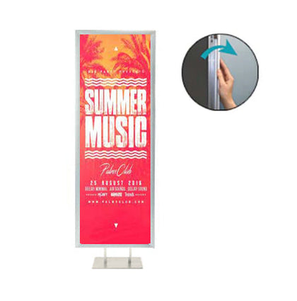 Displaying your 48x72 poster, sign or graphic makes the double pole floor stand a snap to use when it comes to updating your printed insert. It features quick changing, 48x72 snap frames.