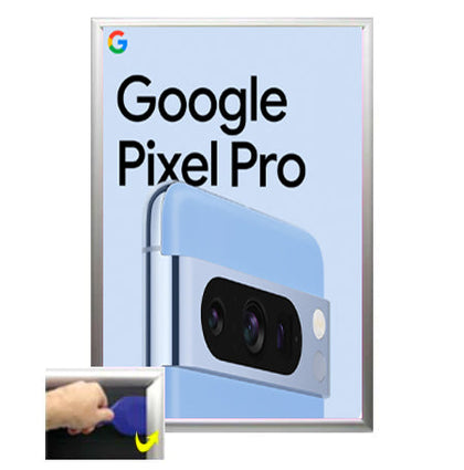 Looking to showcase a promotional poster in a retail store, an informative poster in an office, present an artistic print in a gallery, or create impactful signage at a trade show or auto dealership? Our bold snap frame with a wide edge profile is designed to offer both style and practicality. The wide edge profile provides a robust and eye-catching metal frame for your poster or print, while the quick change snap frame design ensures easy insertion and replacement of the displayed content.